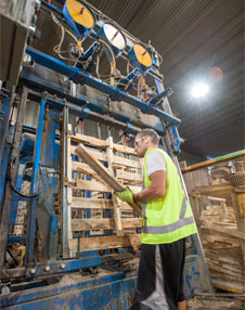 - Available: stringer pallets, block pallets and wing pallets made of either softwood or hardwood.